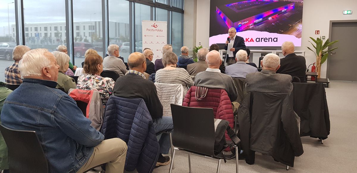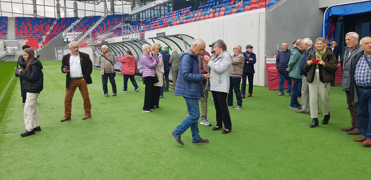 Spotkanie odbyło się w gościnnych progach uruchomionego w tym roku, nowoczesnego stadionu piłkarskiego Itaka Arena w Opolu (wyposażonego między innymi w panele fotowoltaiczne o mocy 280kW). O stadionie zajmująco opowiadał jeden z administratorów obiektu, Denis Kokott, który przypomniał etapy budowy i wymienił cechy charakterystyczne obiektu, częściowo odróżniające go od innych tego typu budowli sportowych. Po ilustrowanym zdjęciami wprowadzeniu zabrał wszystkich zebranych na wycieczkę po stadionie. Opolscy filateliści mogli zobaczyć ten ciekawy obiekt zarówno z poziomu murawy boiska jak i pozostałych pięter, mieszczących szatnie zawodników, pomieszczenia techniczne, administracyjne, sędziowskie (w tym VAR), po loże komentatorskie oraz VIP.