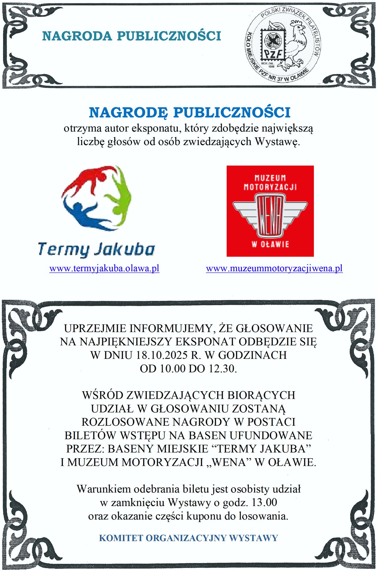 Czy ta nowa inicjatywa wystawiennicza zapoczątkowana przez American Topical Association zyska poparcie i przyjmie się w Polsce, czas pokaże. Zobaczyć będzie można również pokaz prac plastycznych młodzieży szkolnej z okazji 80-lecia Szkoły Podstawowej nr 1 im. Bolesława Chrobrego w Oławie oraz odbędzie się konkurs o Nagrodę Publiczności, którą przyznają zwiedzający wystawę, głosując na najpiękniejszy eksponat wystawy.