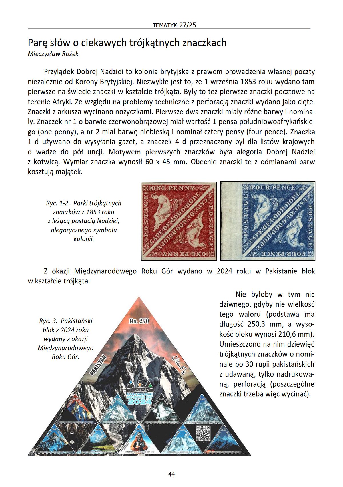 • Mieczysław Rożek, Parę słów o ciekawych trójkątnych znaczkach, s. 44–45.