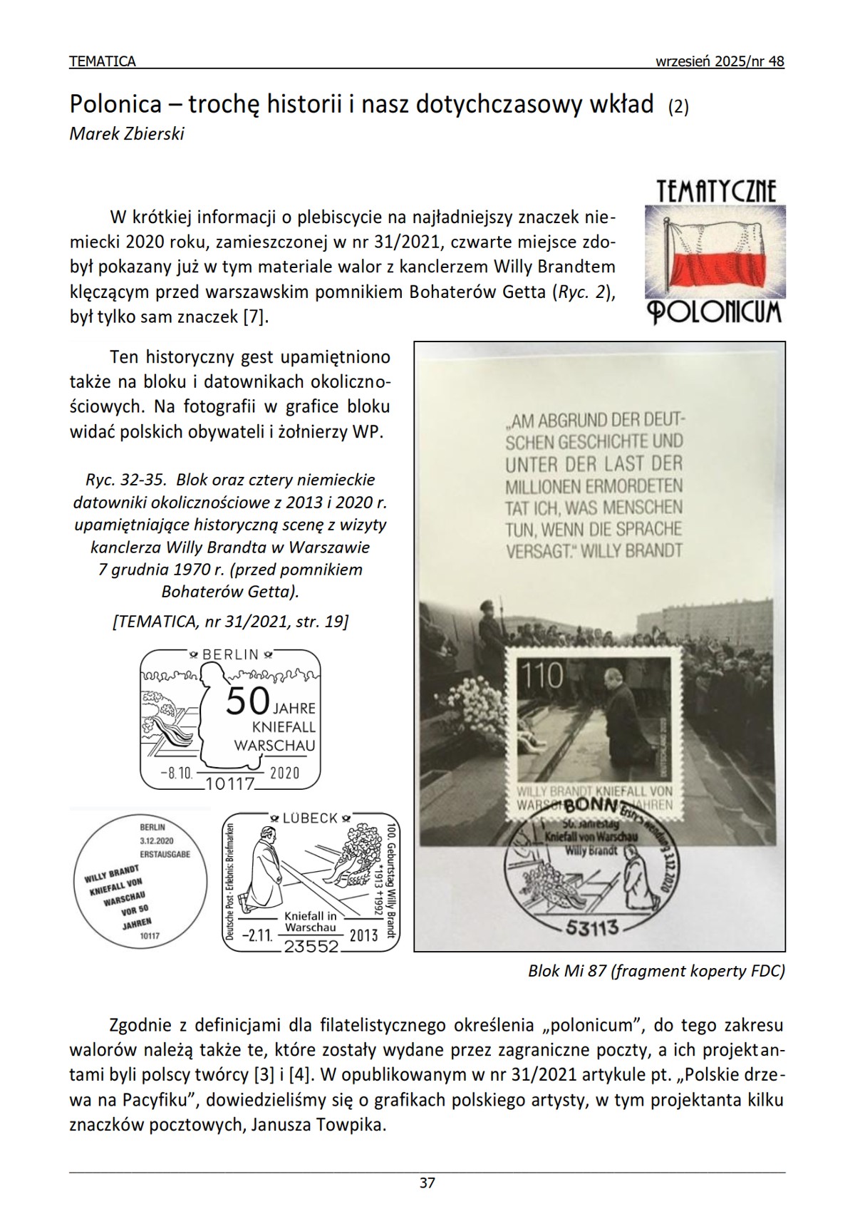 • Marek Zbierski, Polonica – trochę historii i nasz dotychczasowy wkład (2), s. 37–41.