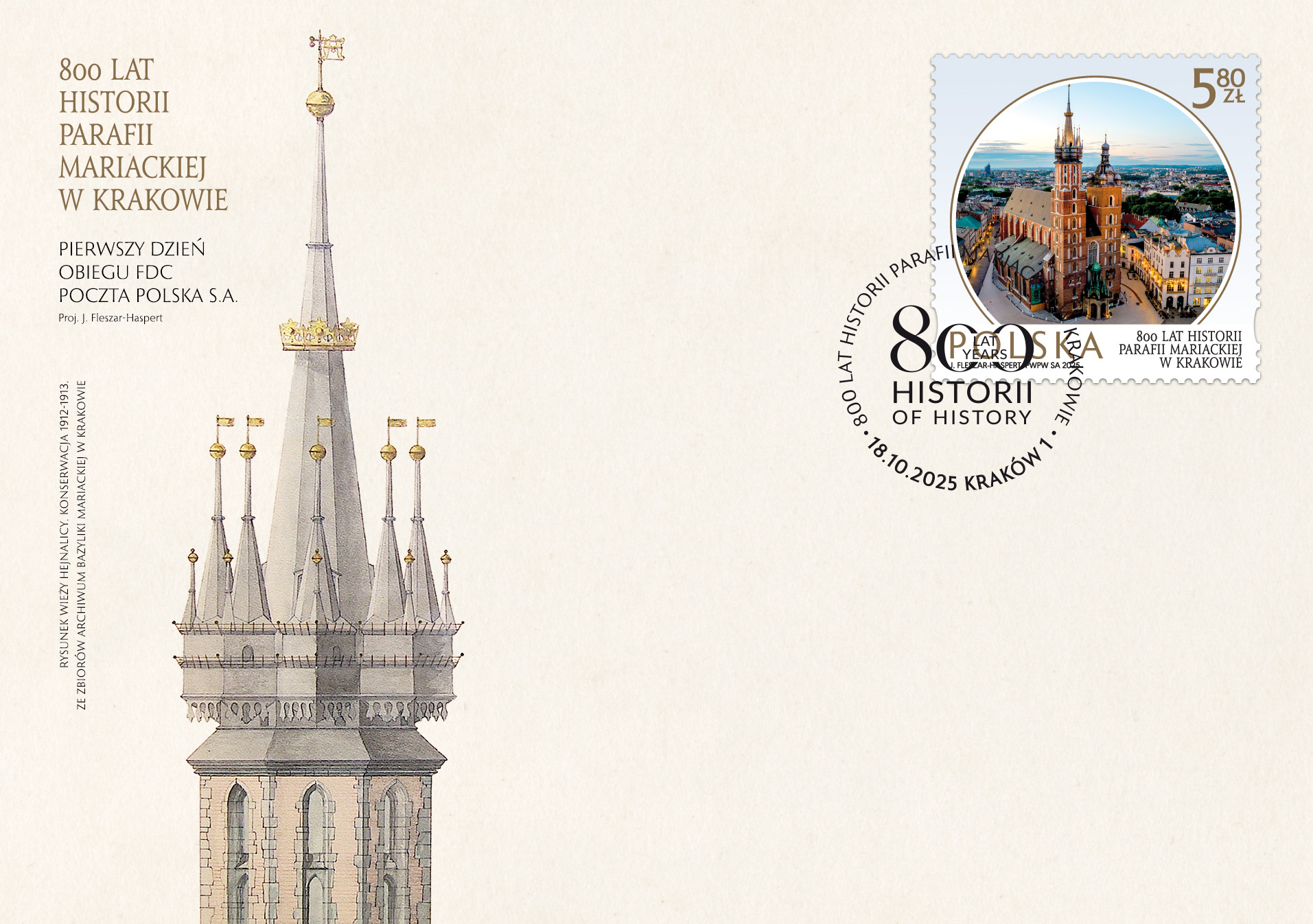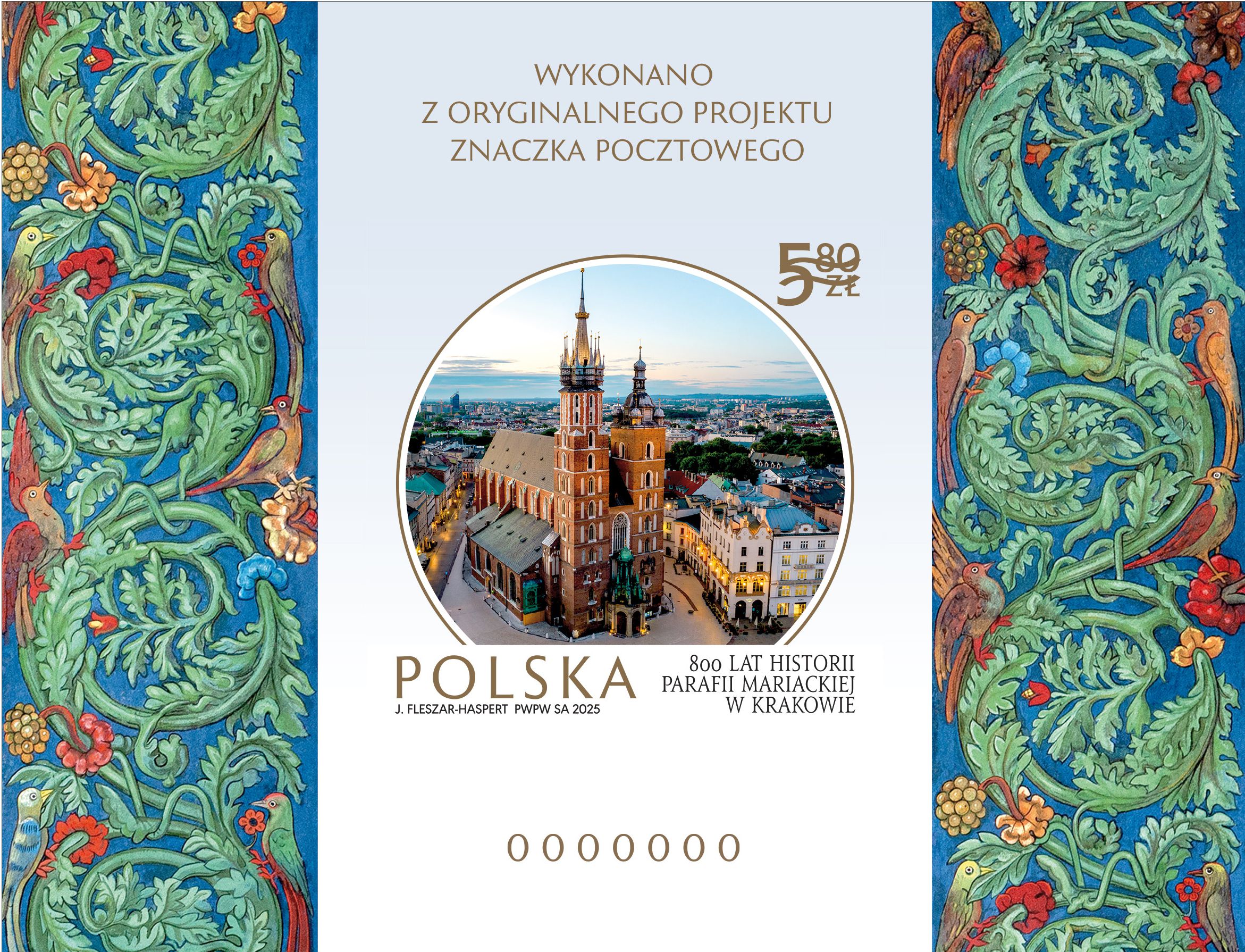 Nowy znaczek „800 lat historii Prafii Mariackiej w Krakowie”
