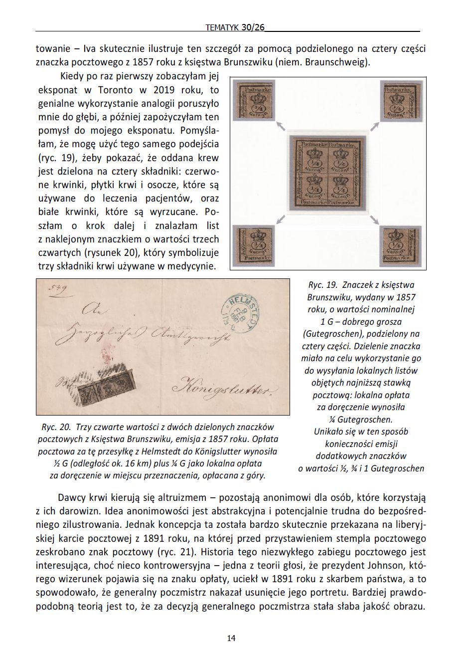 Klub TEMATYK nie zwalnia tempa. Co miesiąc publikuje coś nowego i interesującego. Warto zwrócić uwagę na artykuł kanadyjskiej filatelistki, która poruszyła sprawę podstawową dla wystawiennictwa tematycznego, mianowicie konieczność formułowania narracji tematycznej w formie konsekwentnego, ciągłego opowiadania historii, zapowiedzianej tytułem i planem eksponatu. Biuletyn kierowany jest do 105 członków Klubu. Czy nie chciałbyś do nich dołączyć?.