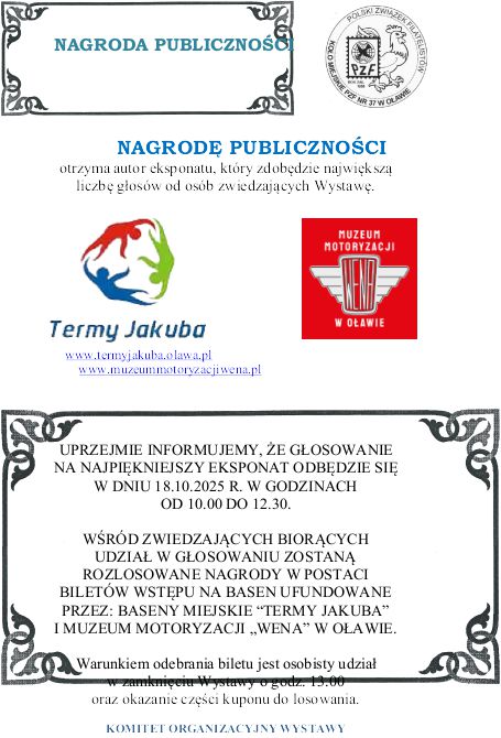 Koło Polskiego Związku Filatelistów nr 37 w Oławie, w ramach obchodów 1000-lecia koronacji Bolesława Chrobrego – pierwszego króla Polski, zorganizowało w dniach 16-18 października 2025 roku Okręgową Wystawę Filatelistyczną „OŁAWA 2025” .